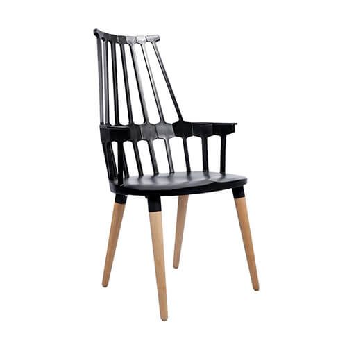 Black painted wooden chair with high back