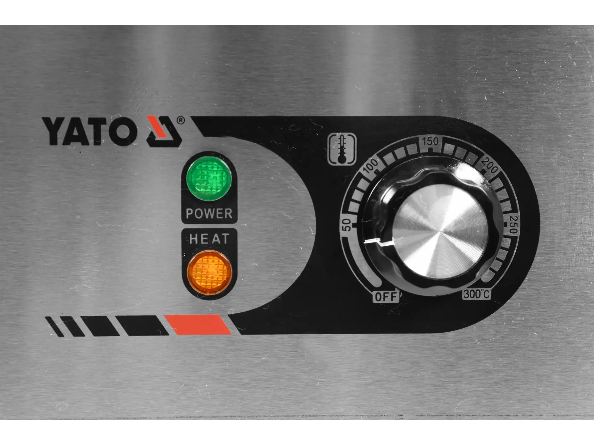 The YATO 55 cm electric grill is a professional solution for commercial kitchens and restaurants, ideal for fast and even cooking. Made of stainless steel, it offers enhanced corrosion resistance and is easy to clean. It operates at 220-240V a.c. with a power of 3000W, allowing temperature adjustment between 50 and 300°C.