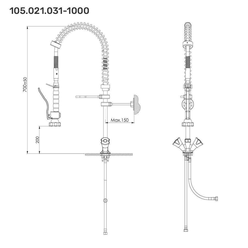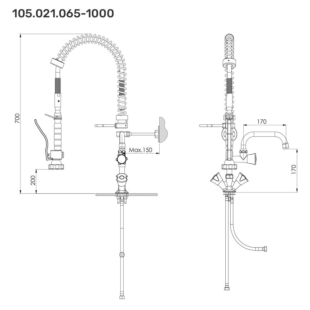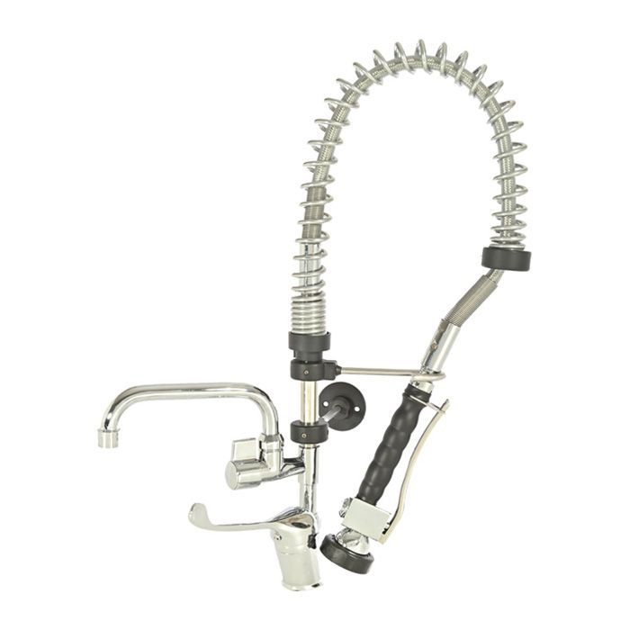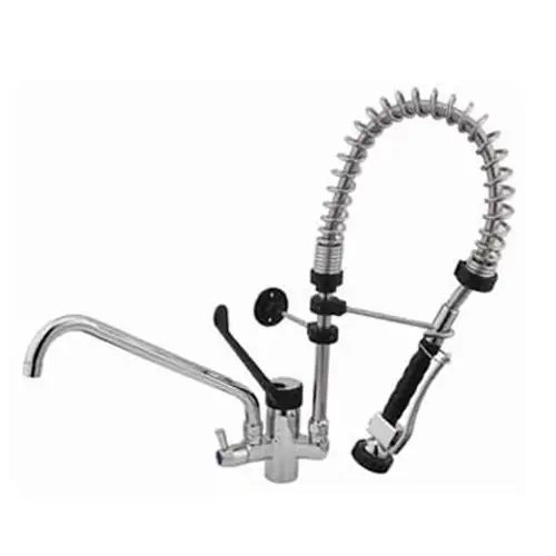 The hose faucet is designed for professional use in commercial kitchens, providing maximum efficiency in washing dishes and utensils.