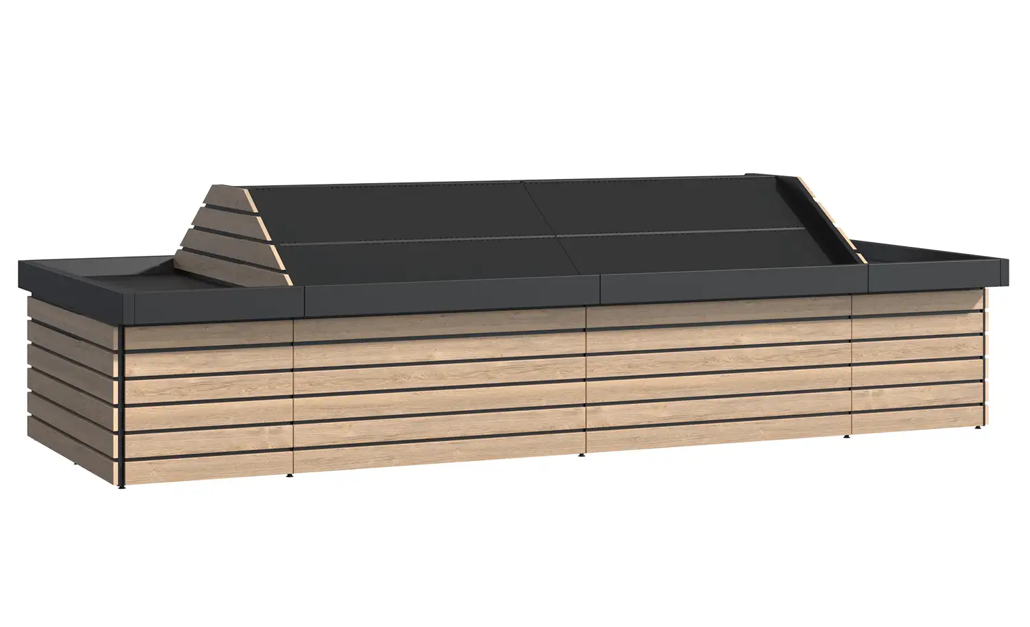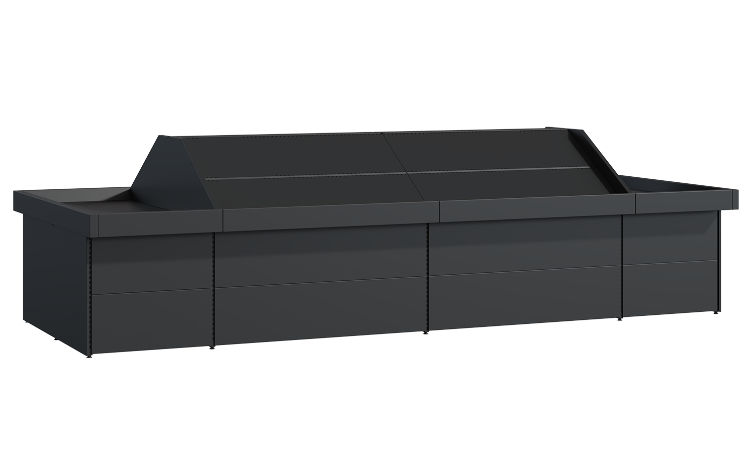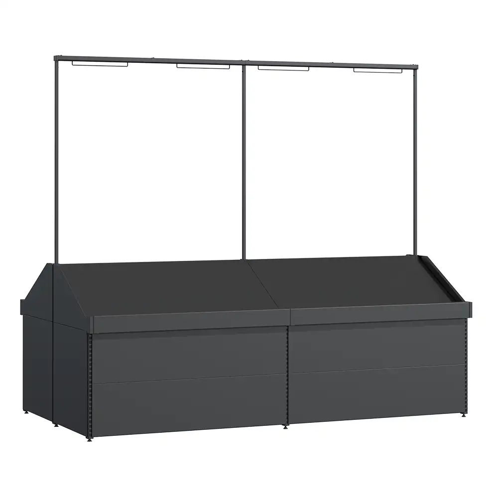 Display Table for the Fresh Zone, specially designed for modern retail. It ensures 360° visibility and single-level presentation, with inclined modules that highlight assortments and speed up restocking. The metal base provides stability, while the chipboard top is easy to clean for consistent hygiene. The modular system adjusts easily, is compatible with crates/boxes, and is available in mobile (with wheels) or stationary versions, optimizing workflows and seasonal rearrangements.