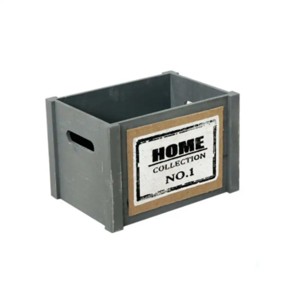 Gray wooden basket, 350x250x230 mm – ideal for efficiently organizing small items. Made of durable wood with a modern design, perfect for the office, bedroom, or living room.