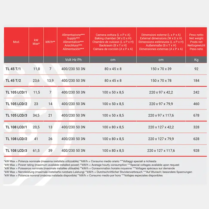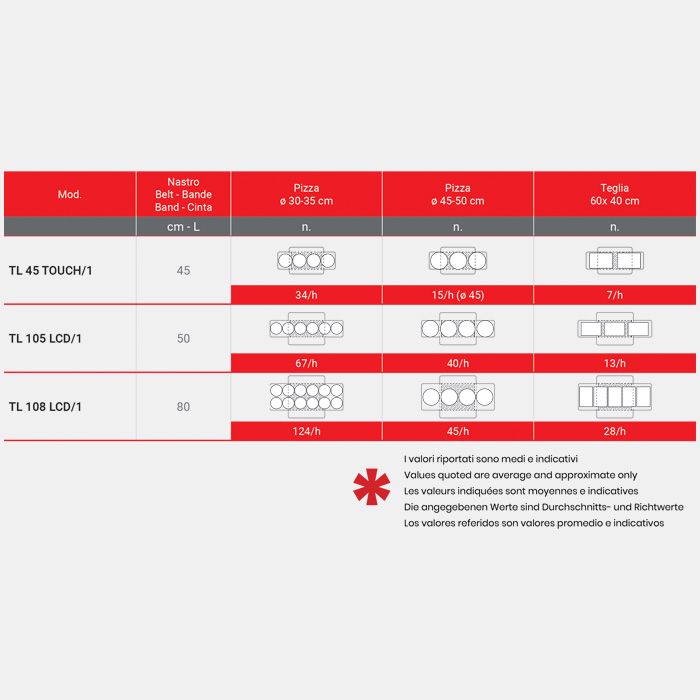 34 pizza Ø30–35 cm/h, 15 pizza Ø45 cm/h