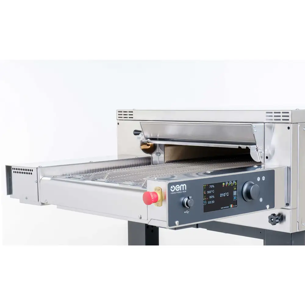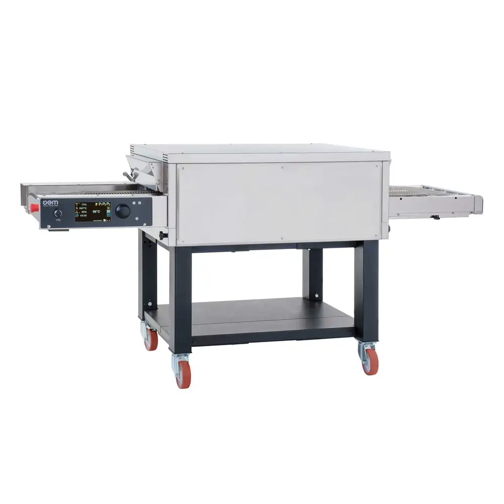 A static electric conveyor oven designed for high-volume, non-stop baking of pizza and other food items. With stackable modular chambers and advanced digital control, it delivers uniform baking, automated precision, and exceptional energy efficiency.