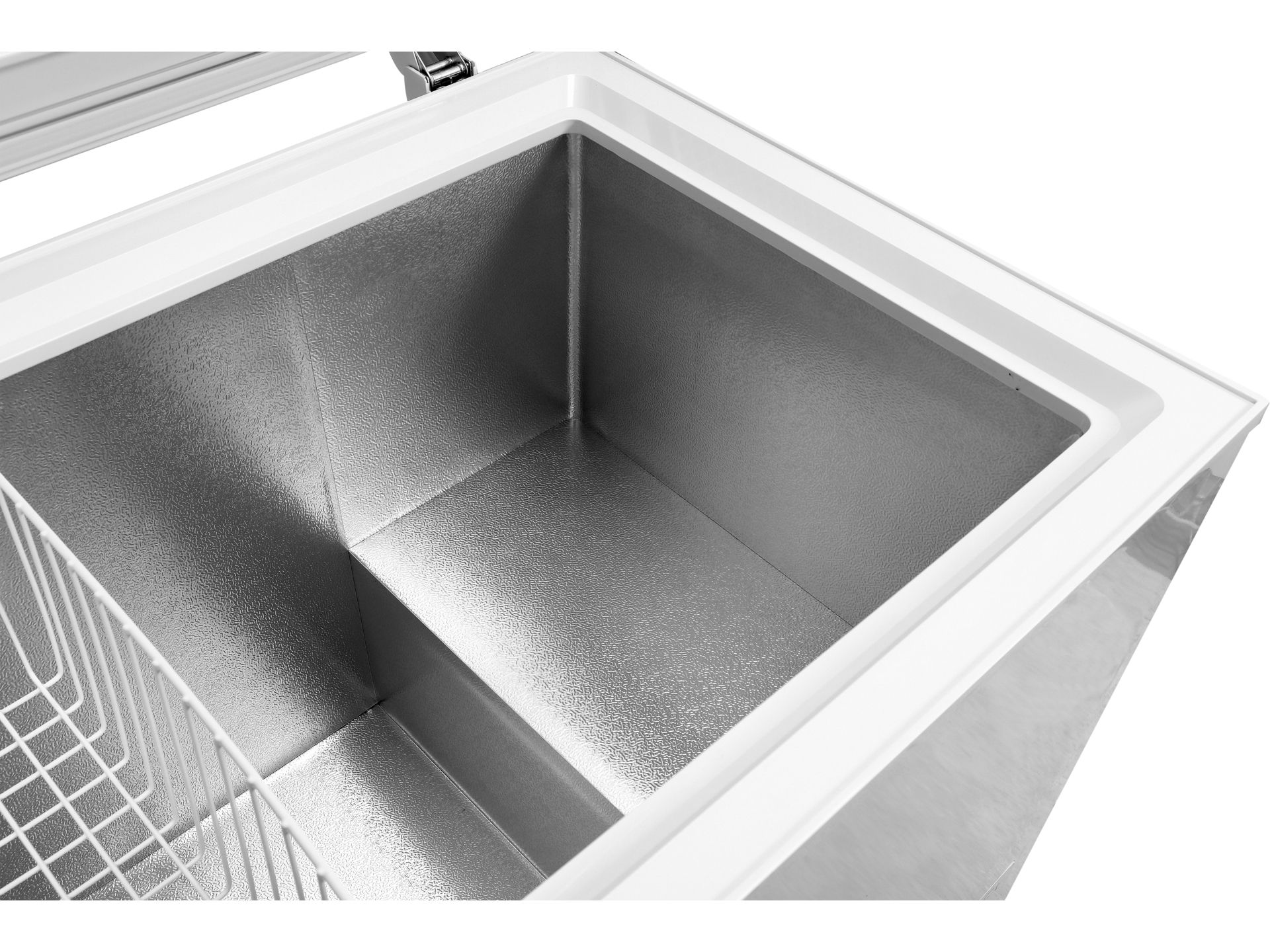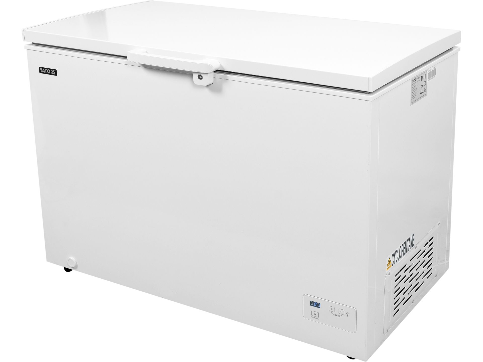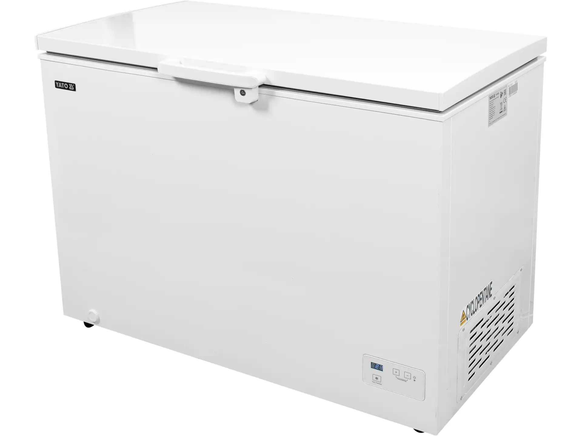 The YATO refrigerator box with a capacity of 282 liters has dimensions of 1116x644x845 mm and operates within a temperature range from -24 to +10 ˚C it is equipped with a freezer and a wire basket the housing is made of steel and has a mass of 42 kg it operates at a voltage of 220-240 V a.c.