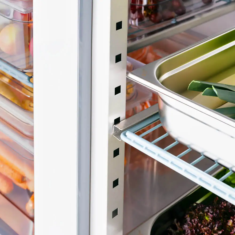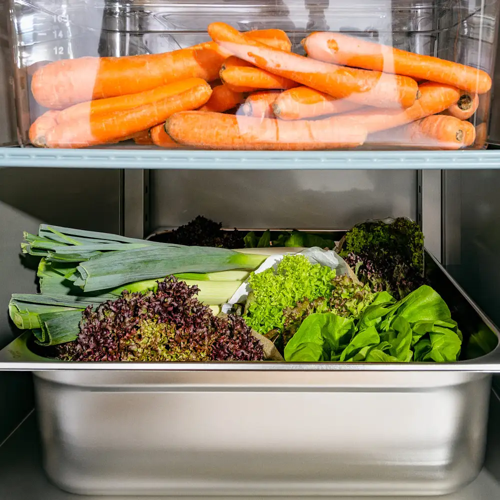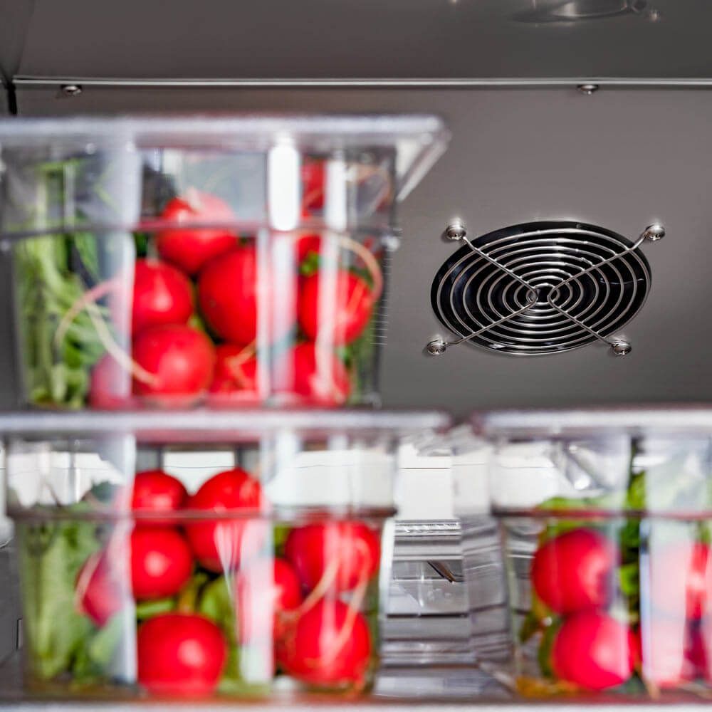 Professional STALGAST stainless steel refrigerator cabinet designed for storing food products at a stable, controlled temperature. The stainless steel body ensures high hygiene standards, corrosion resistance, and long service life.