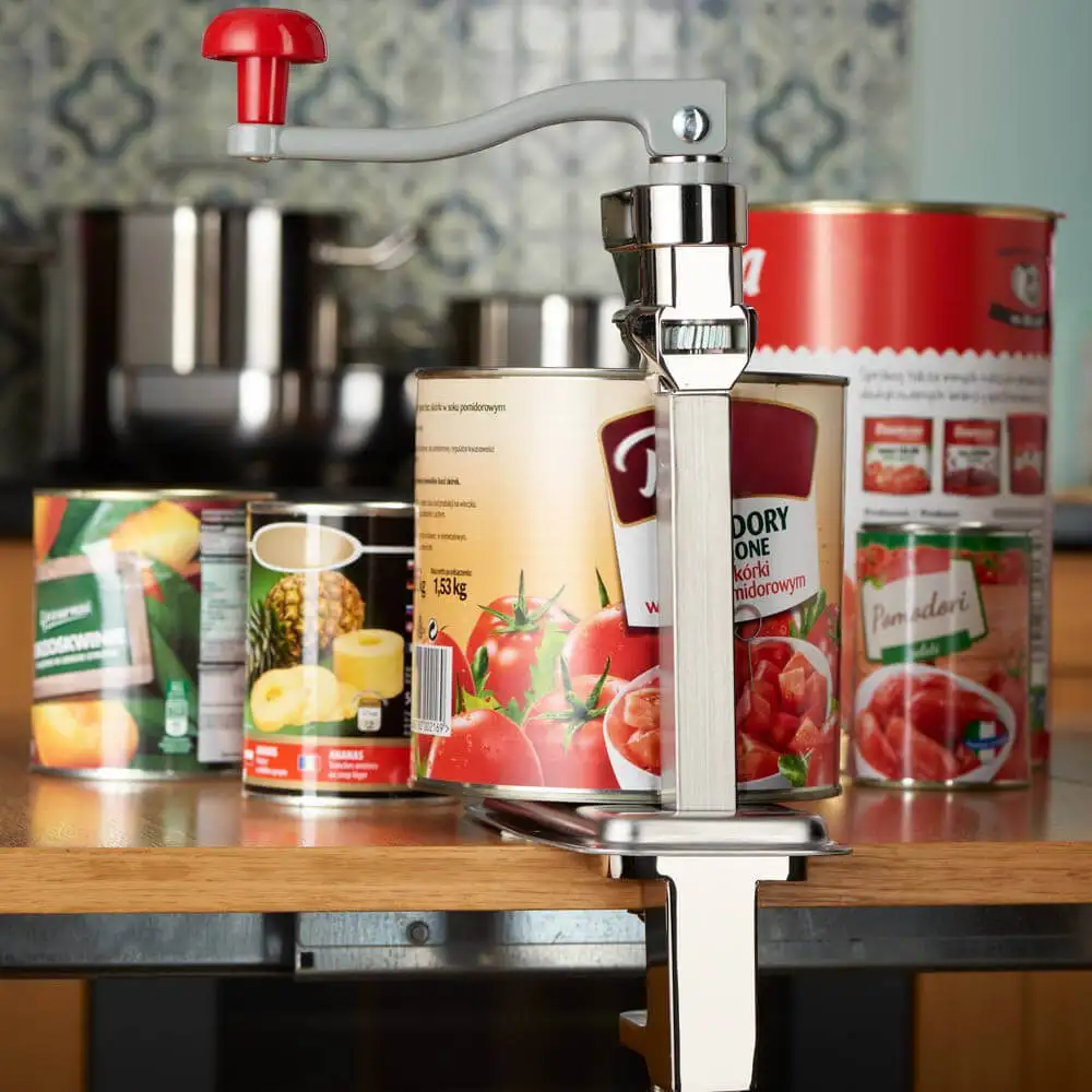 Deschizător de conserve, atașat de blat