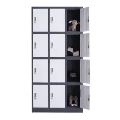 Dulap metalic pentru depozitare genți cu 12 uși, alb-gri, 900x400x1850 mm