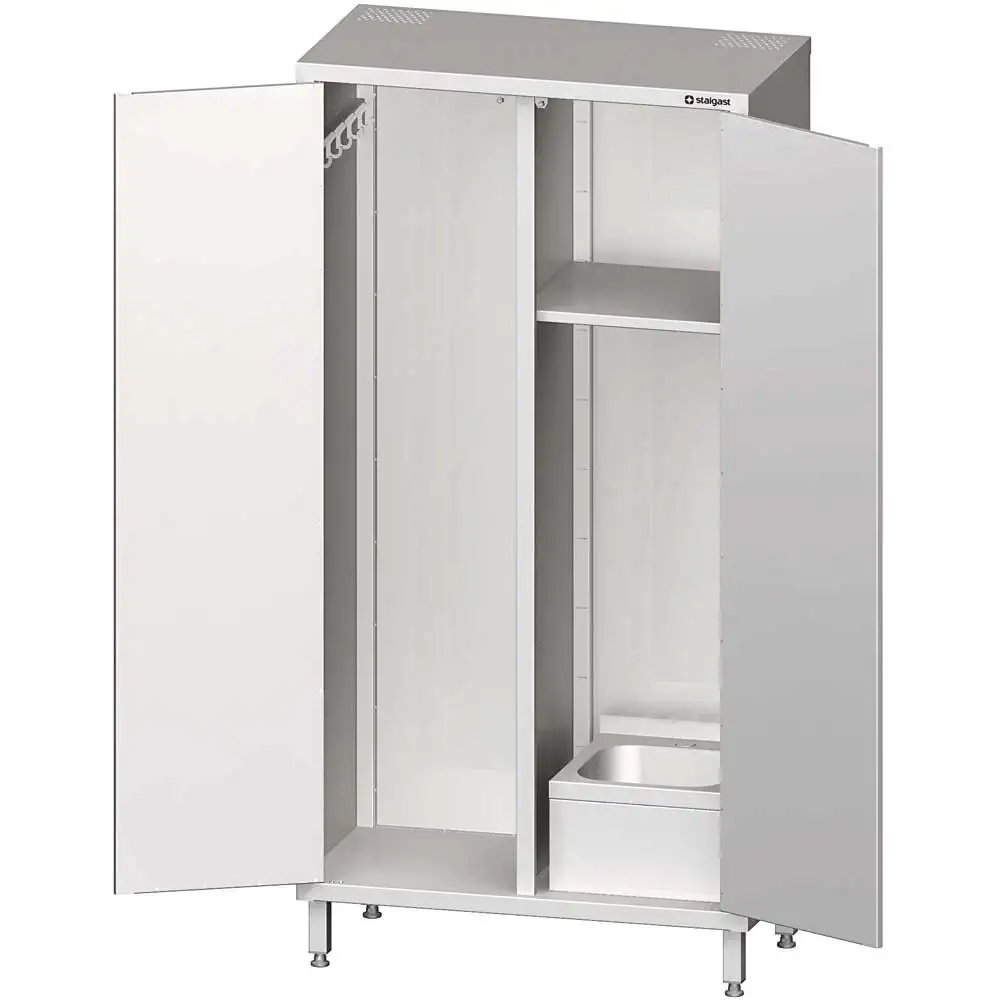 Dulap organizator din inox cu 2 uși și chiuvetă integrată, 1000×500×2000 mm