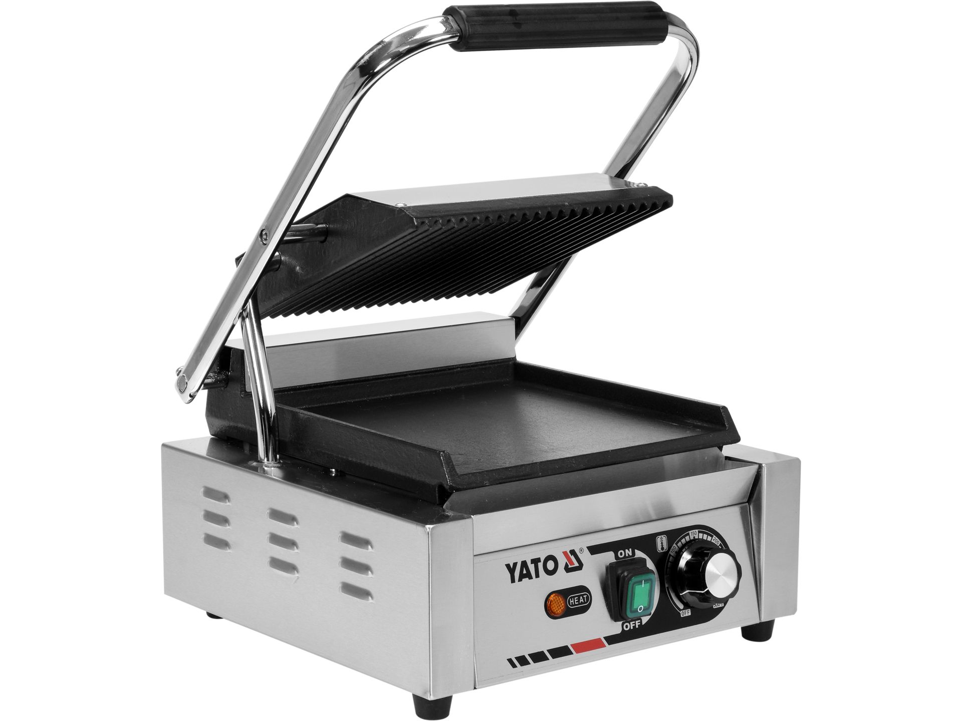 Acest grătar electric YATO de 32 cm este ideal pentru bucătării profesionale, asigurând o gătire uniformă datorită plăcilor din fontă canelate pe ambele părți. Funcționează la o putere de 1800W și un interval de temperatură de 50-300°C, oferind flexibilitate pentru diferite preparate.