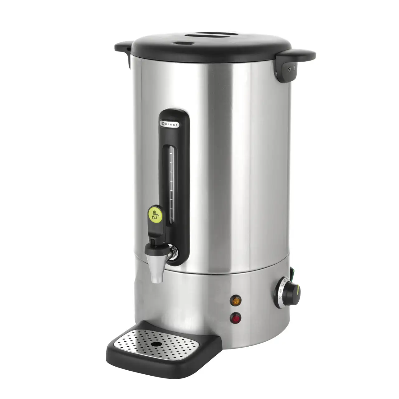 Электрический диспенсер для горячих напитков HENDI UNIQ изготовлен с точностью и стилем – он выделяется на любом буфете своим элегантным матовым черным покрытием. Оснащен практичными функциями, такими как кран без капель, индикатор уровня воды и автоматическое поддержание температуры, он обеспечивает легкое обслуживание кофе при каждом приготовлении. Преимущества: Прочный корпус из нержавеющей стали. Кран без капель для легкого и чистого наливания. Автоматическое поддержание температуры после заваривания – кофе всегда готов к подаче. Индикаторы, упрощающие использование.