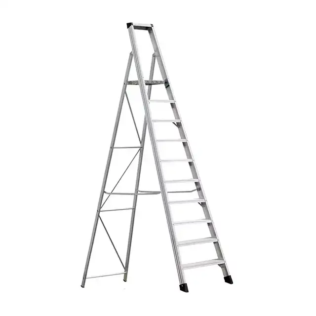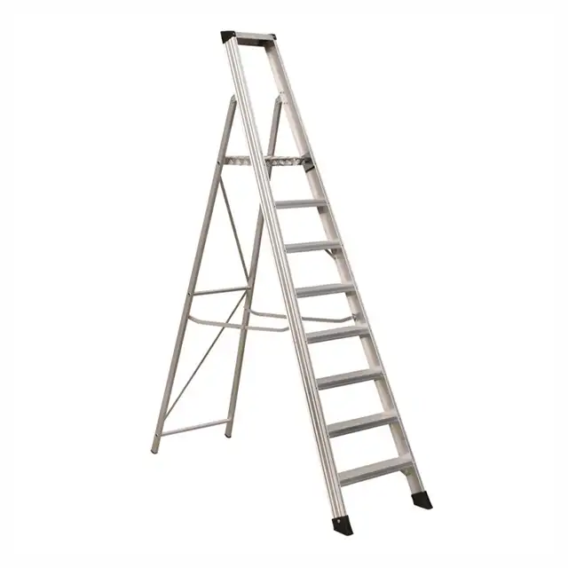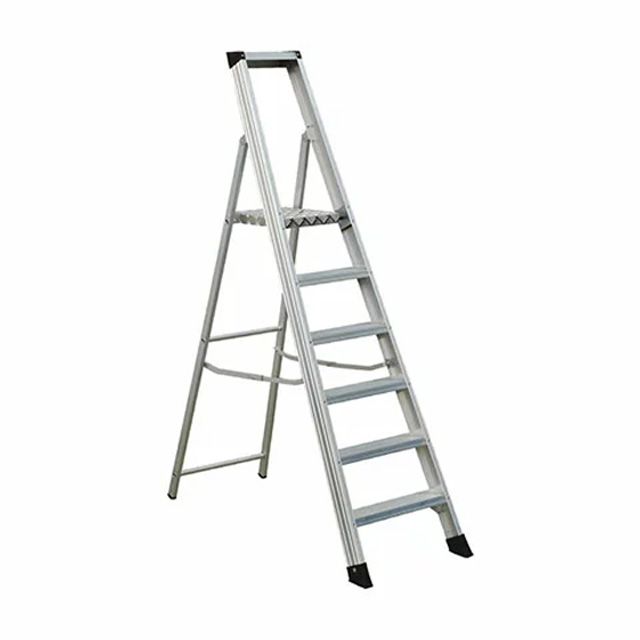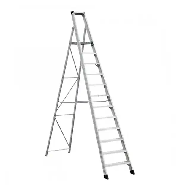 Алюминиевая лестница разработана для обеспечения безопасности, стабильности и прочности, оснащена эргономичными ступеньками, которые облегчают использование.