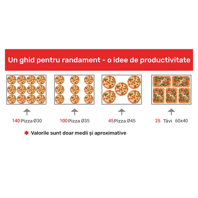 100 пиццы Ø30/ч, 100 пиццы Ø35/ч, 45 пиццы Ø45/ч