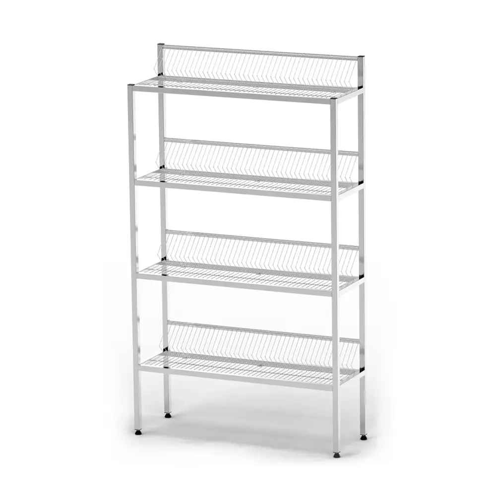 Профессиональный стеллаж из нержавеющей стали для сушки и хранения посуды. Прочная рама из трубы 25x25 мм и полки из нержавеющей стали обеспечивают долговечность. Регулируемые по высоте ножки с пластиковыми наконечниками гарантируют устойчивость на любой поверхности.