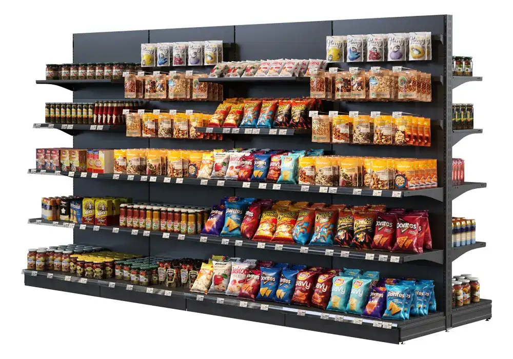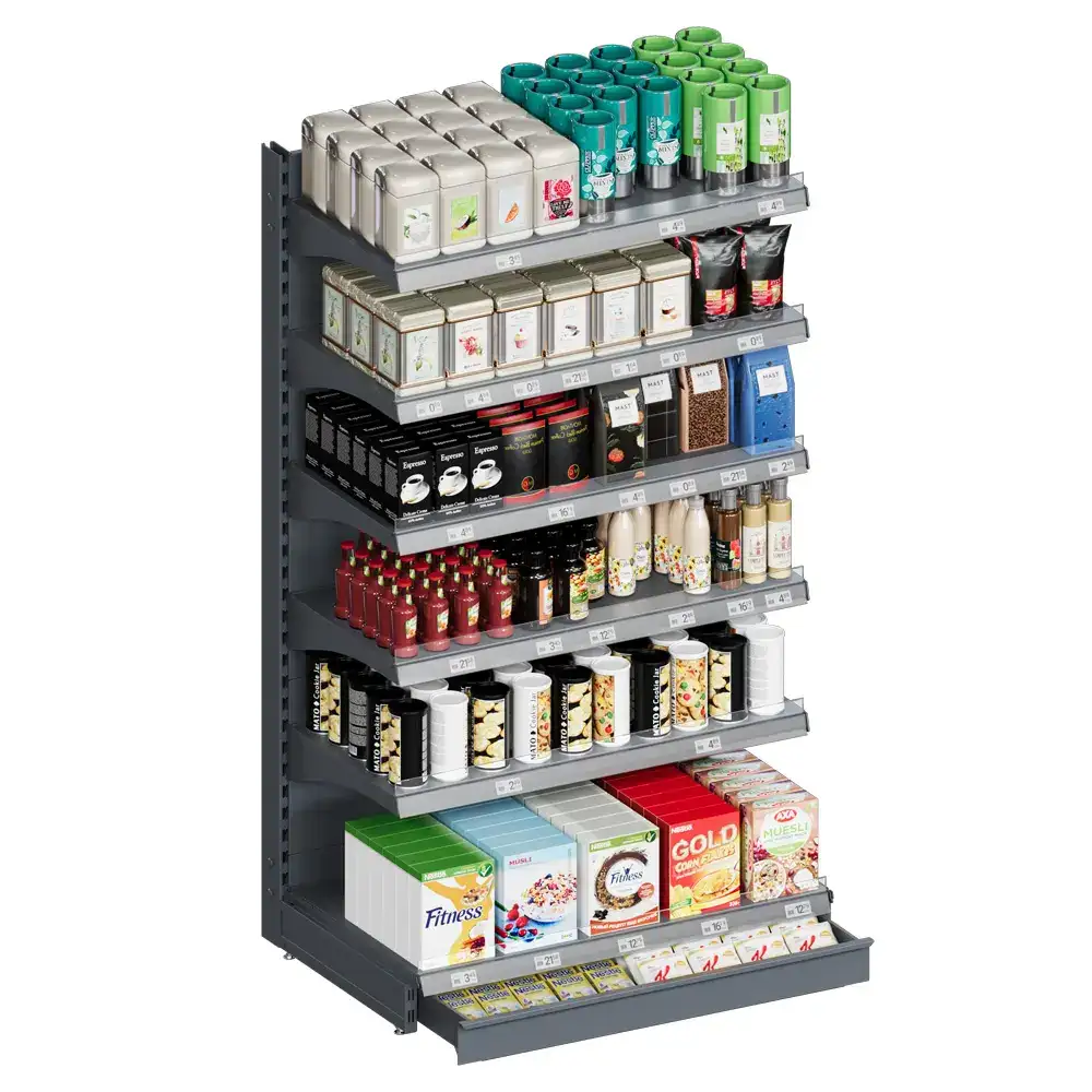Коммерческие металлические стеллажи это практичное и долговечное решение для супермаркетов и специализированных магазинов. Такая торговая мебель идеально подходит для организации и эффективной демонстрации упакованных товаров. Модульная конструкция металлических стеллажей позволяет создавать дополнительные проходы, что способствует оптимизации пространства в магазине.
